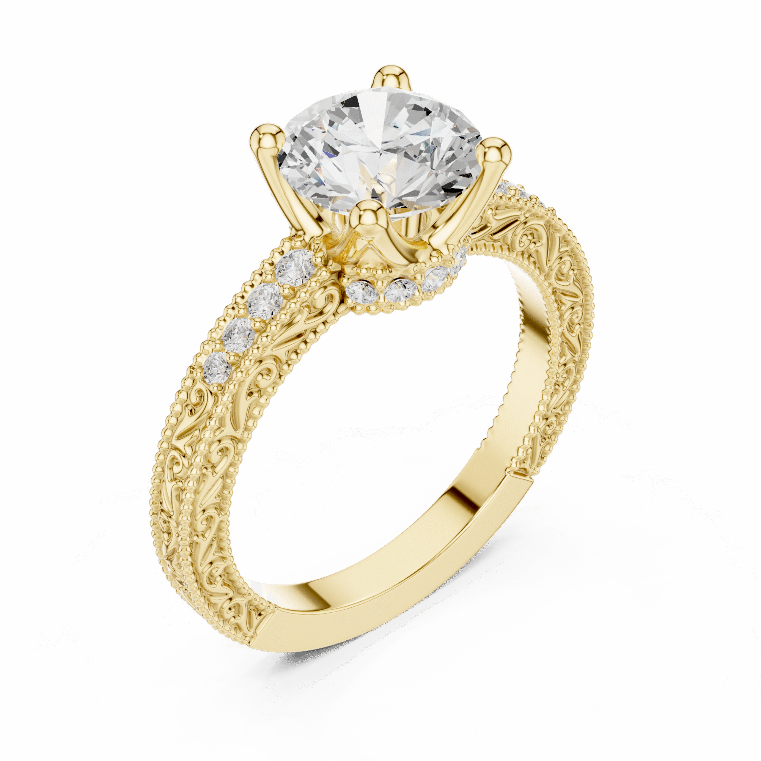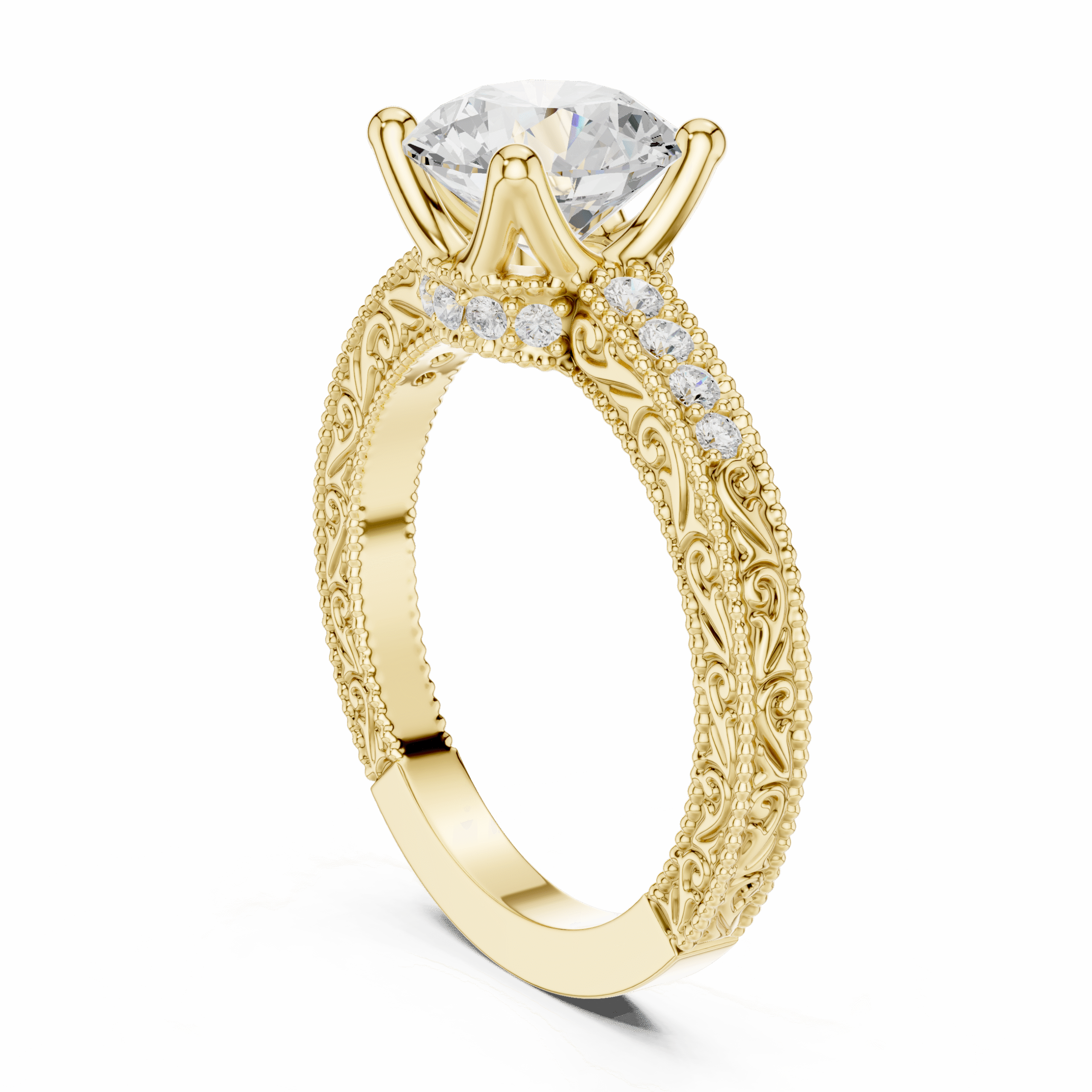 2 Ct Round Lab Grown Diamond Vintage Ring with Accent Band | E VVS2 | 14K Gold