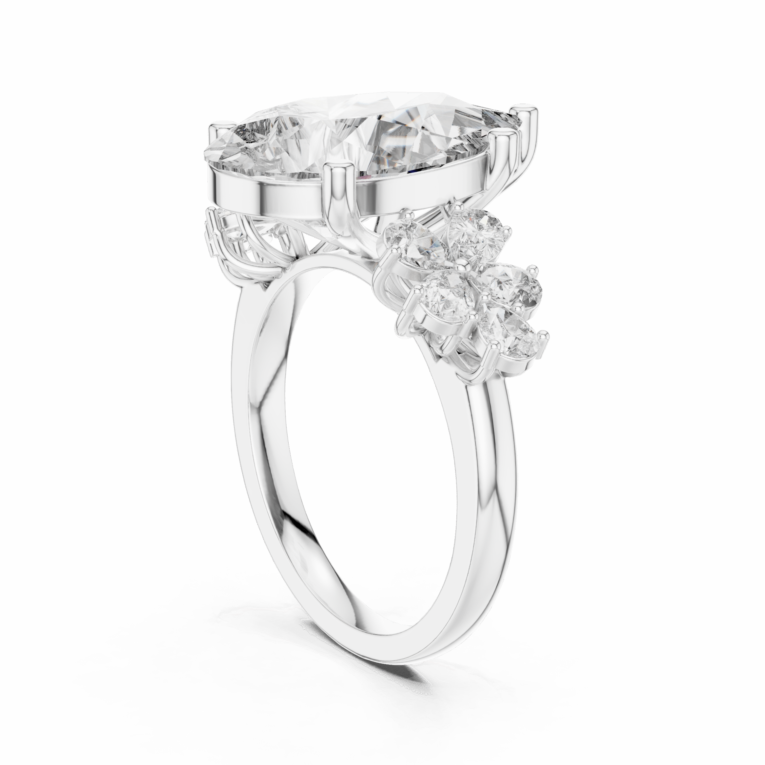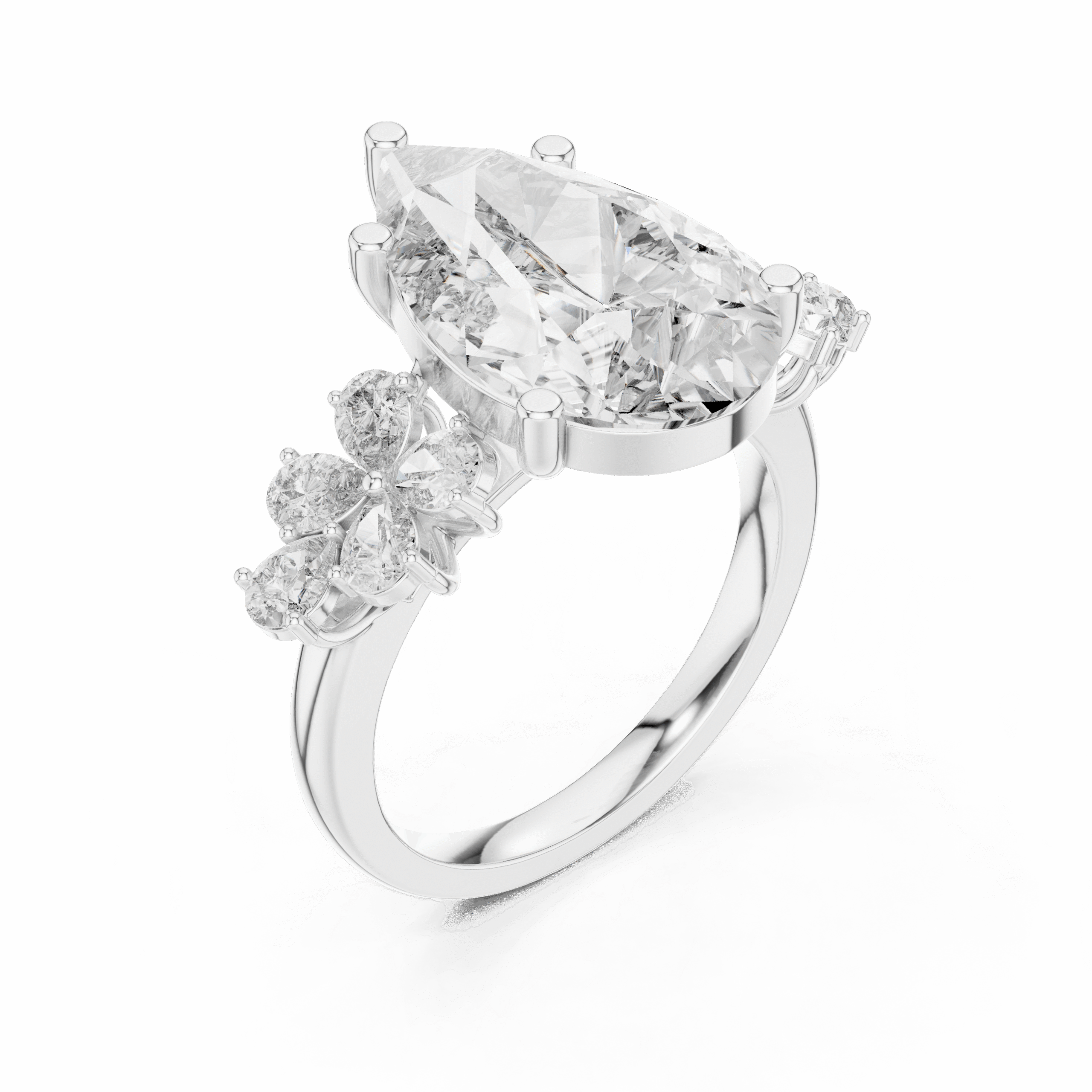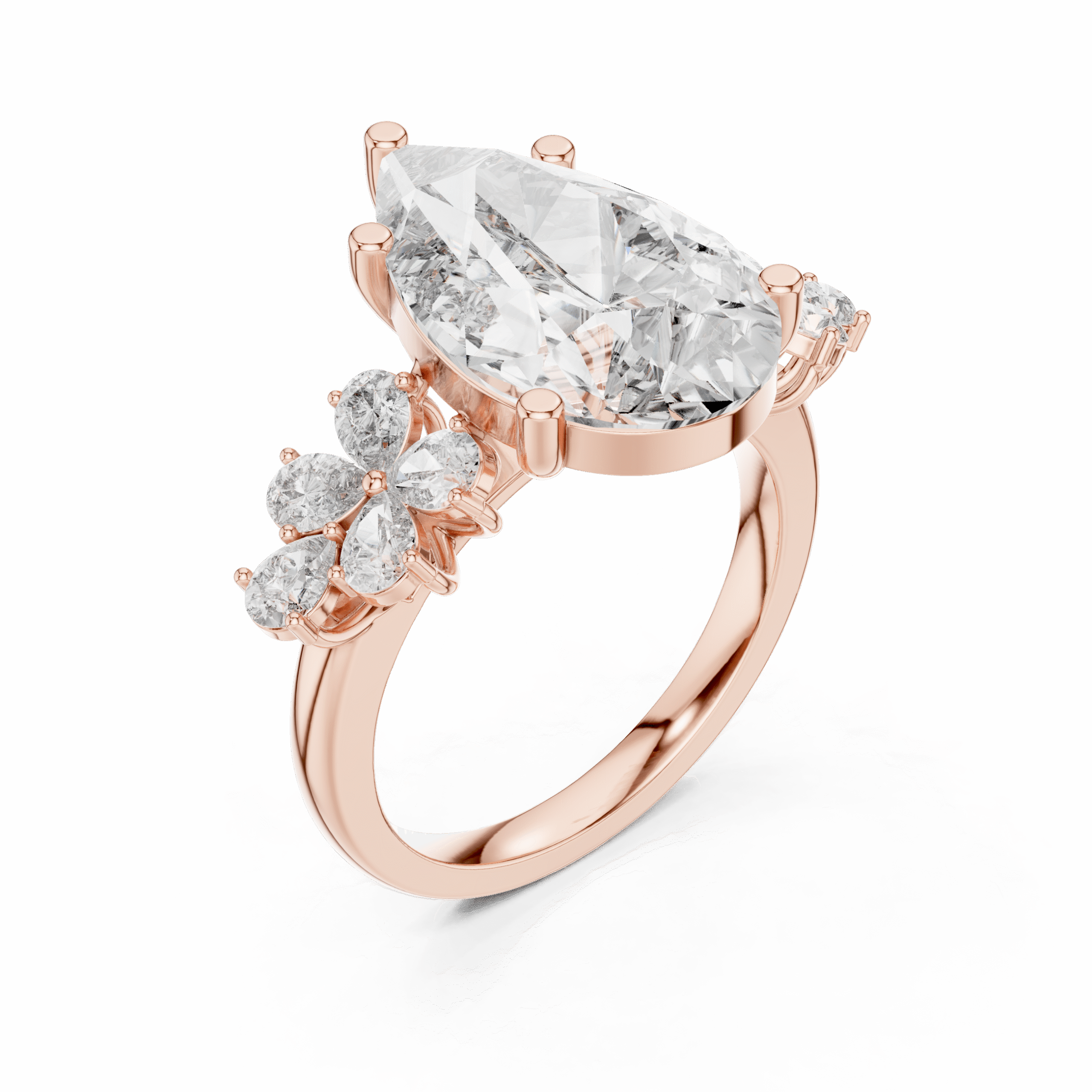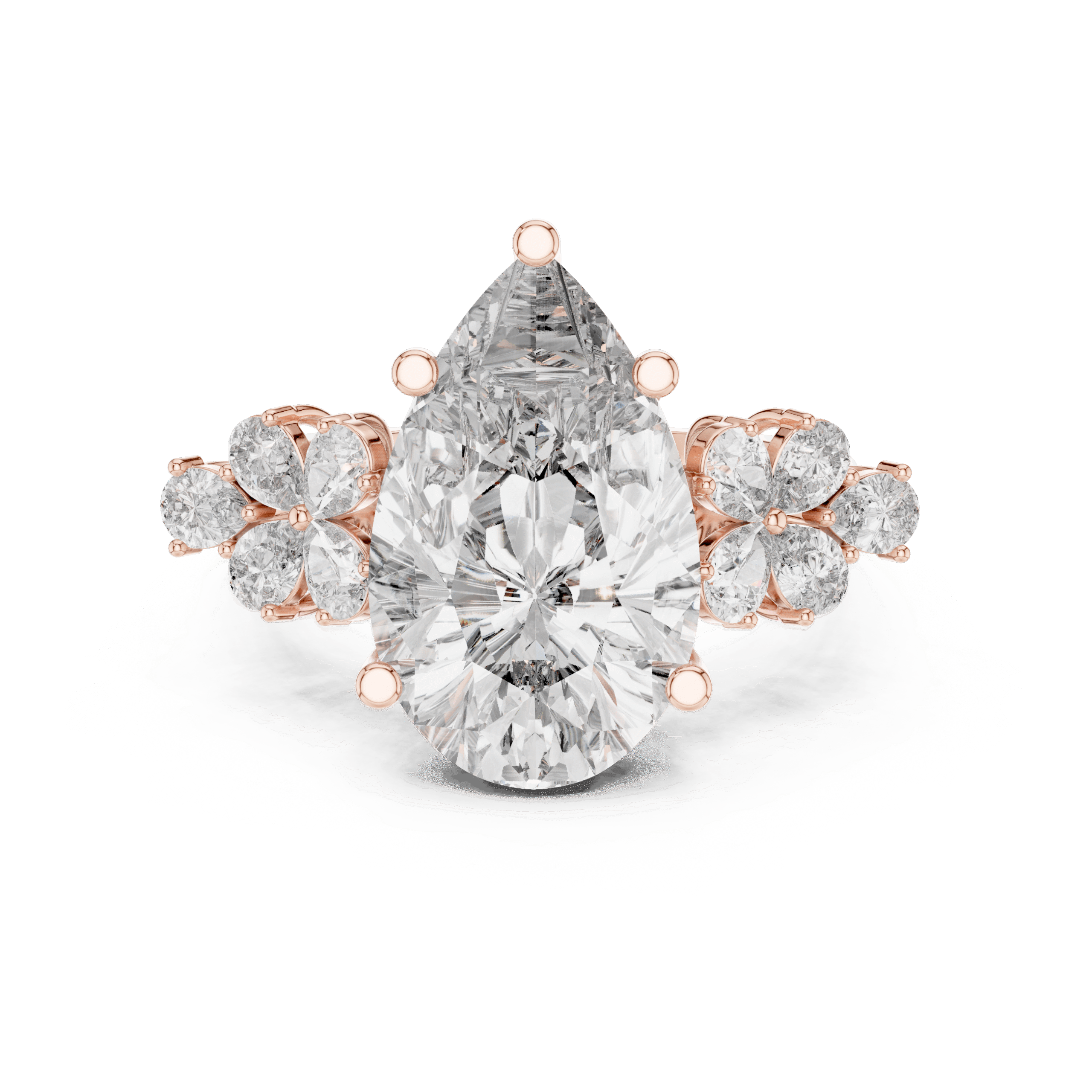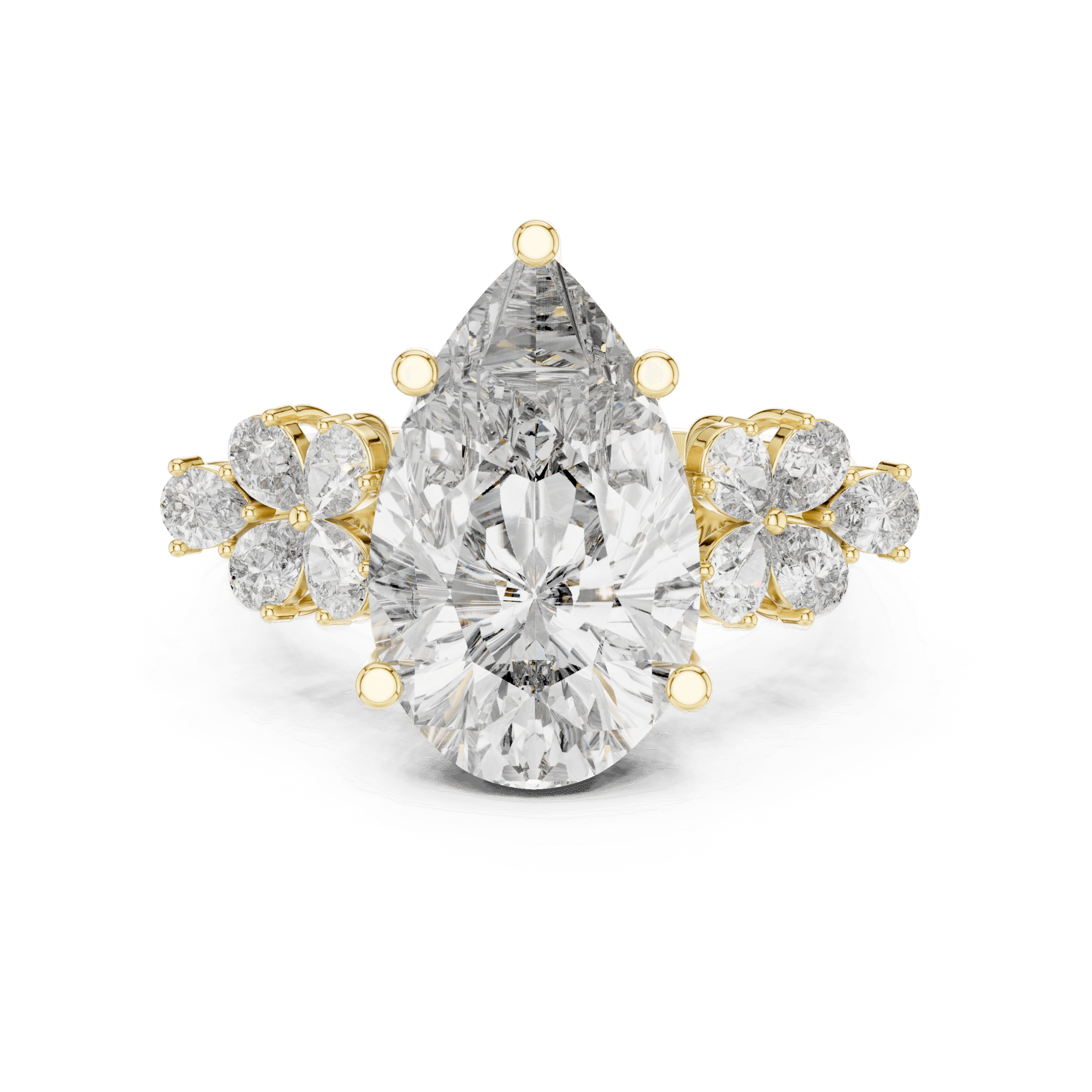6 CT Pear Shape Lab Grown Diamond Ring | IGI Certified | 14K Yellow Gold | Cluster Side Stones